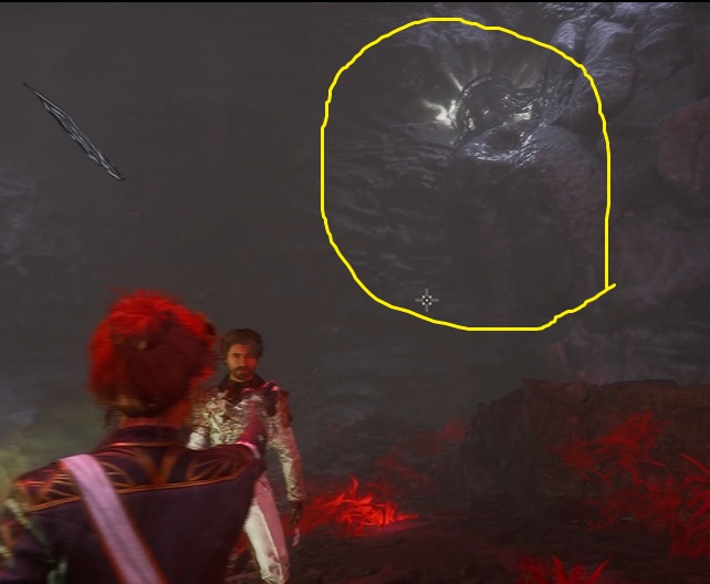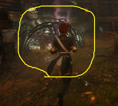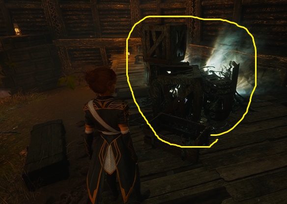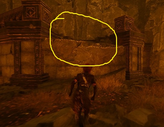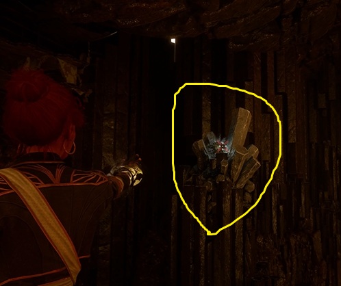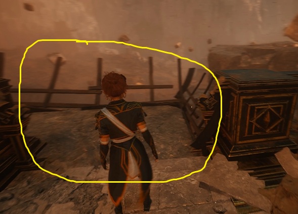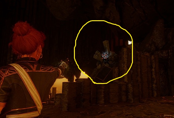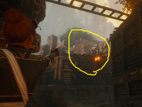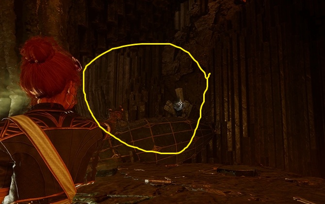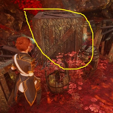 Da bandeira, siga o caminho descendo pelo edifício. Quando chegar na primeira tocha à direita, pegue o caminho atrás dela, pela sua direita. No final tem uns caixotes, destrua e pegue Fragmento de tintura energetica.