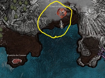 Vire-se, pegue a direita e siga o caminho até a cutscene. Depois, é só seguir reto até o portal. Ao passar pelo portal, você vai receber o troféu Campo de batalha esquecido.