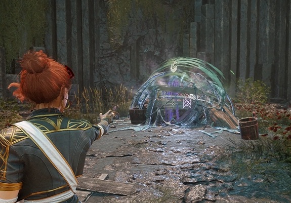 Volte até a bifurcação e pegue a direita. Siga o caminho e enfrente o inimigo com martelo pra receber Catalisador de chroma polido x2. Pegue o item que ele protegia pra receber Tom de lumina.
