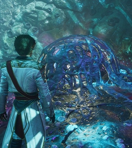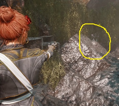 De volta ao controle do Gustave, pressione e segure Triângulo ou Y (dependendo do seu controle) para se curar. Depois, vire-se e siga o caminho até uma cachoeira. Embaixo dela, pegue 180 chromas.