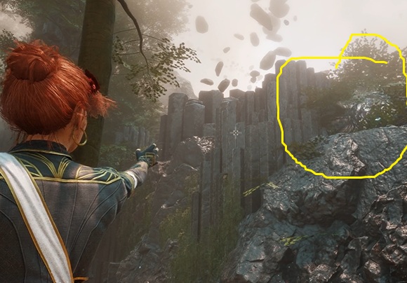Quando você chegar ao topo, aparecerão inimigos voadores. Inimigos voadores são difíceis de acertar com habilidades ou ataque básico. Aqui, use tiro livre (L2 ou LT para mirar e R2 ou RT para atirar) para garantir dano, ou foque em contra-ataques.