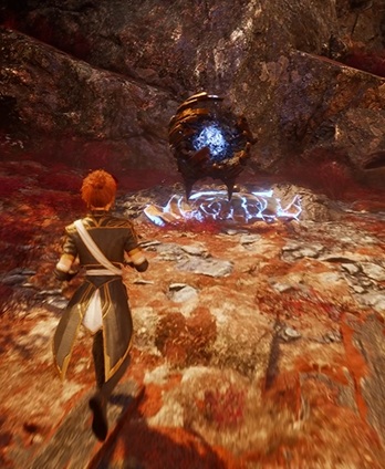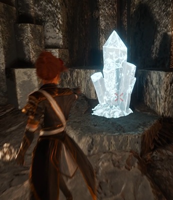 Volte até a última bifurcação e, desta vez, siga em frente até encontrar uma espécie de bola piscante, conforme a imagem.